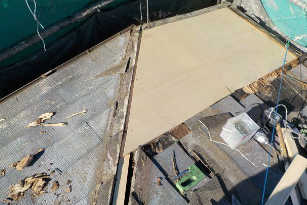 屋根の下地迄剥がした状態、下地の補強と下地板を張りました