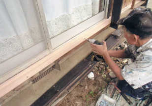 木製敷居は年数も経ち腐食し雨戸も動かせません、新しい敷居を取り付けます