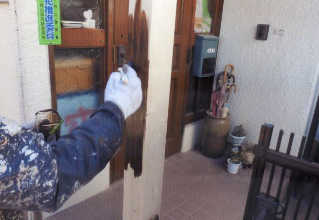 玄関柱の下の部分が腐食し軒の傾き取り換えが必要です、柱を取り替え後に塗装