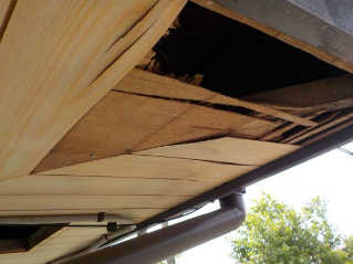 台風等でカサギトタンが飛ぶ事も有ります屋根カサギ下地板取り換え40,000円