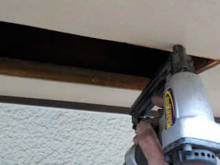 屋根軒の取り付け、車庫天井張り。外壁塗装6回塗り付帯塗装