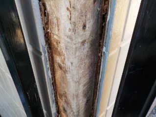 川越市Y邸ベランダより雨水が回りサイディングのコナー部分がフヤケ取り換えが必要