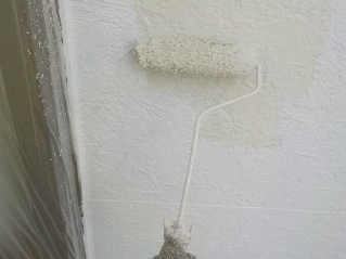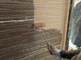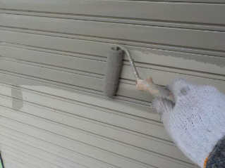 外壁サイディング塗装の仕上げ作業、下塗り、ワイドシーラー、中塗りSDサーフエポ