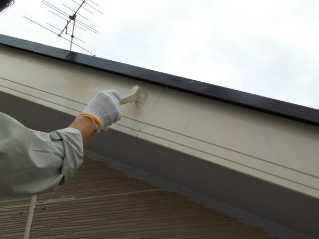 破風、雨樋の塗装、色を替えファインSI 2液で仕上げます