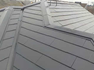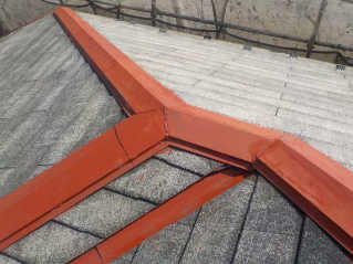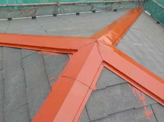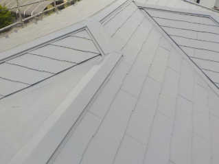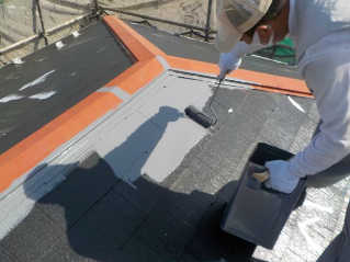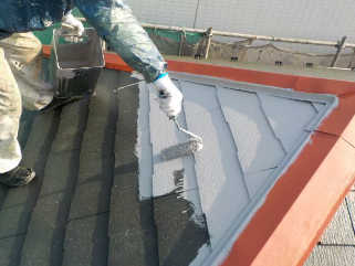 屋根遮熱塗装3回塗りの下塗り後にシャネツロック2液を使い仕上げます