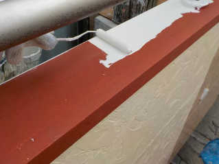 上塗り、ファインSI 2液を使い仕上げます、2色の仕上げと成ります
