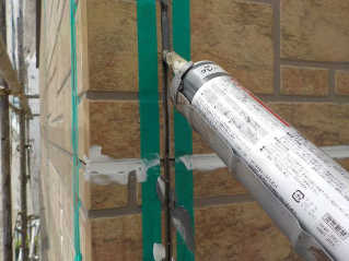 サイディングんも合わせ目にもシーリング処理を行います全体に施工します。