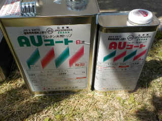 ベランダ床防水、下塗りFRP専用下塗り後にAUコートで仕上げます